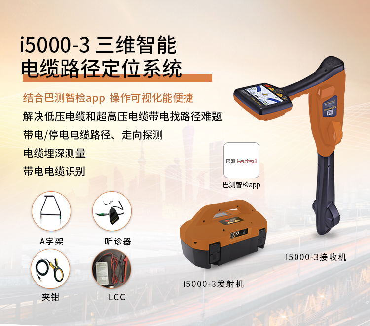 i5000-3地下电缆3D智能管线定位系统是麦测公司专注地下电缆定位领域的一款新产品,适用于380V-220kV电力电缆的路径定位、深度测量、外护套故障定位、GPS坐标定位及绘图等。其创新设计,使设备更加简单智能化;其多样性的测试模式选择,更加符合用户个性化的使用要求;50多种频率选择及多元化的可选配件,更助力于用户解决复杂现场问题。可选插即用外部GPS和MLA信标器定位模块,适合不同的工况要求。